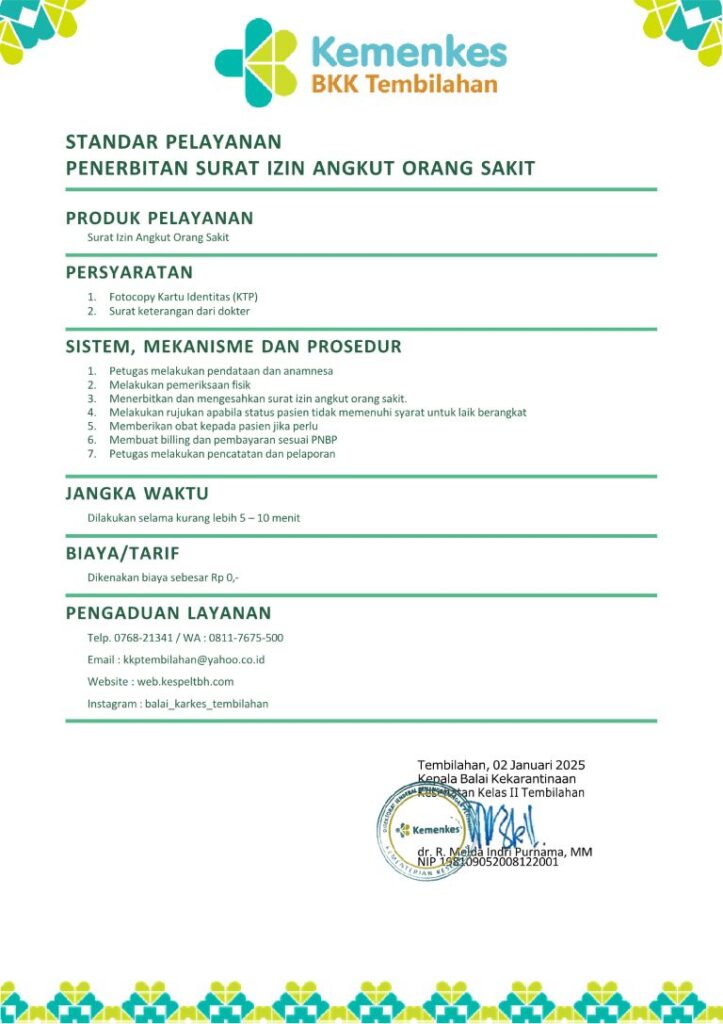 - Penerbitan Sertifikat Surat Izin Angkut Jenazah
