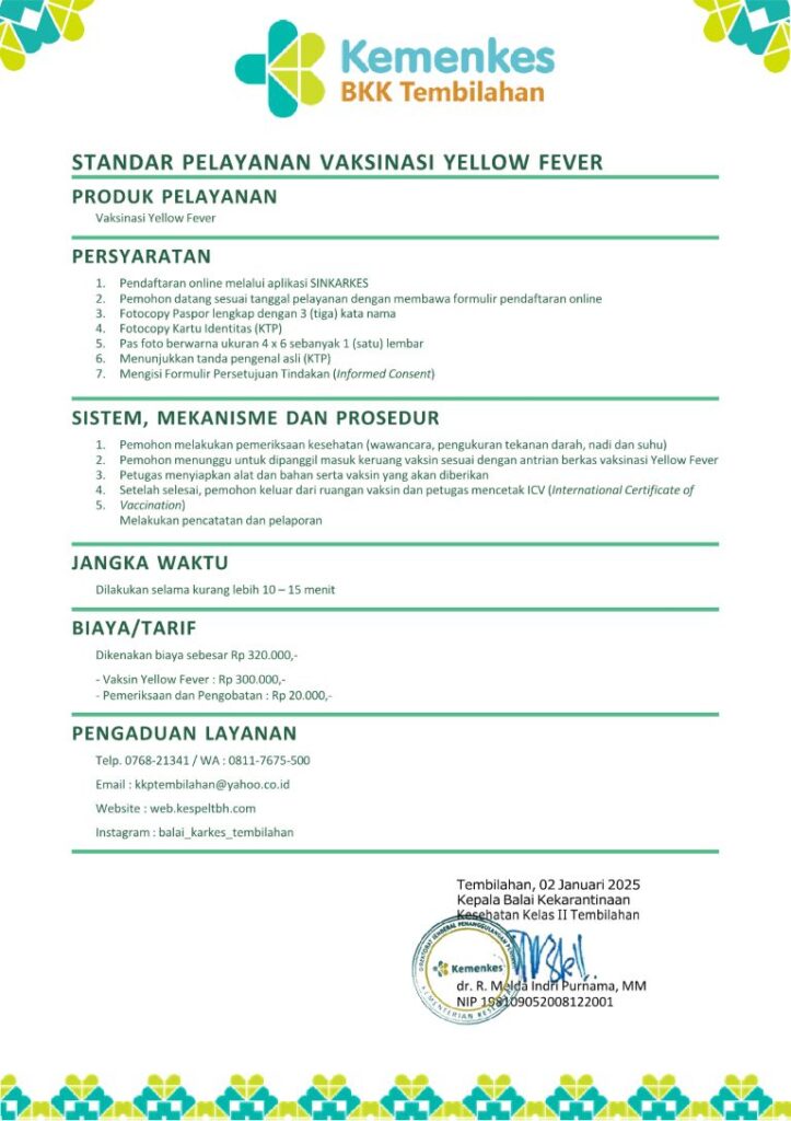 Standar Pelayanan Vaksinasi Yellow Fever